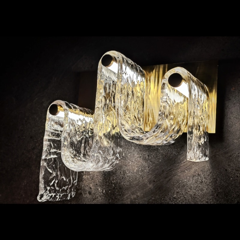 Realizzata in vetro curvato trasparente, impreziosito da striature fatte a mano.
